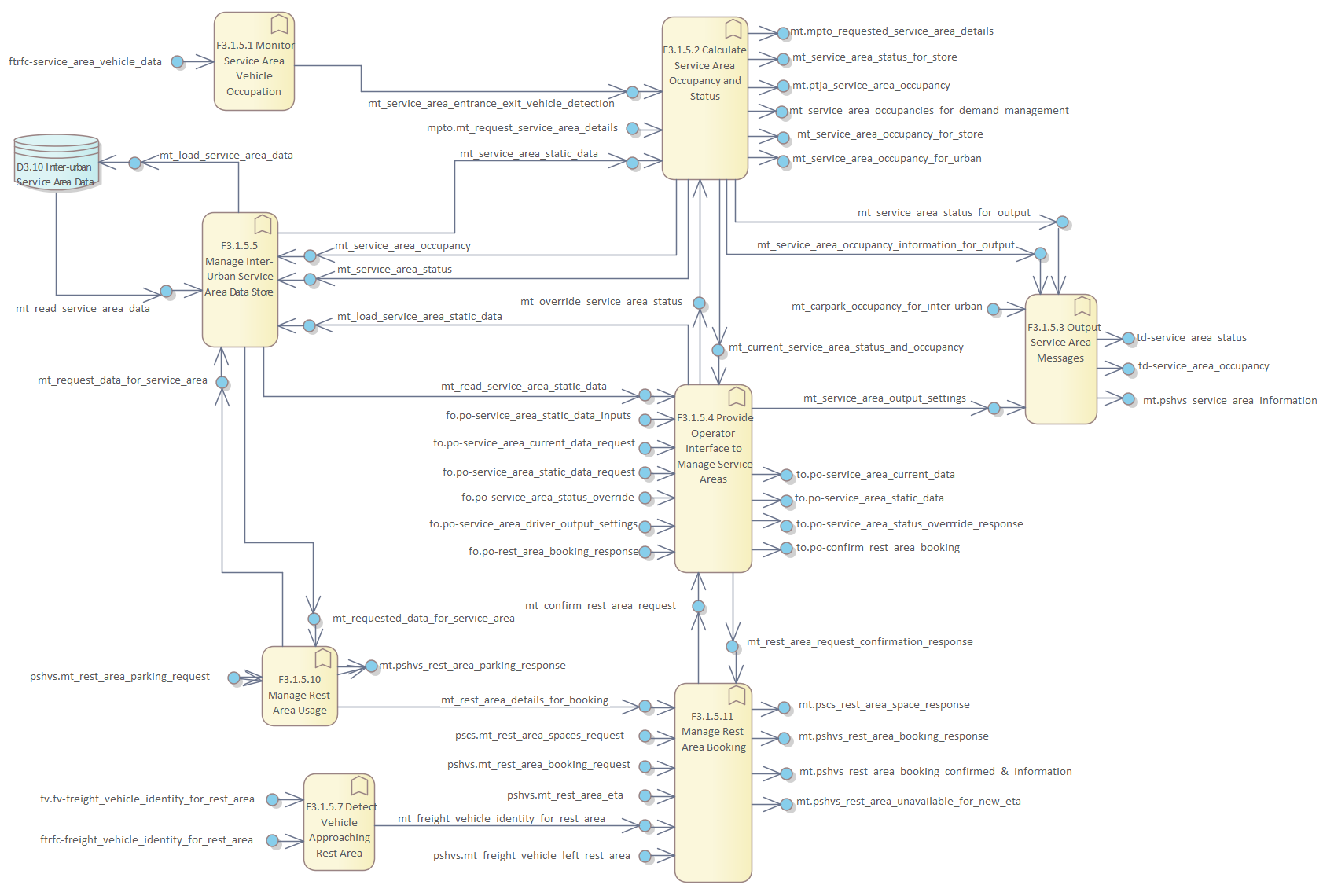 Frame Repository / Frame Functional View / Functionality / Functional Area F3 - Manage Traffic / F3. Manage Traffic / F3.1 Provide Traffic Control / F3.1.5 Provide Management of Service Areas / DFD F3.1.5 Provide Management of Service Areas