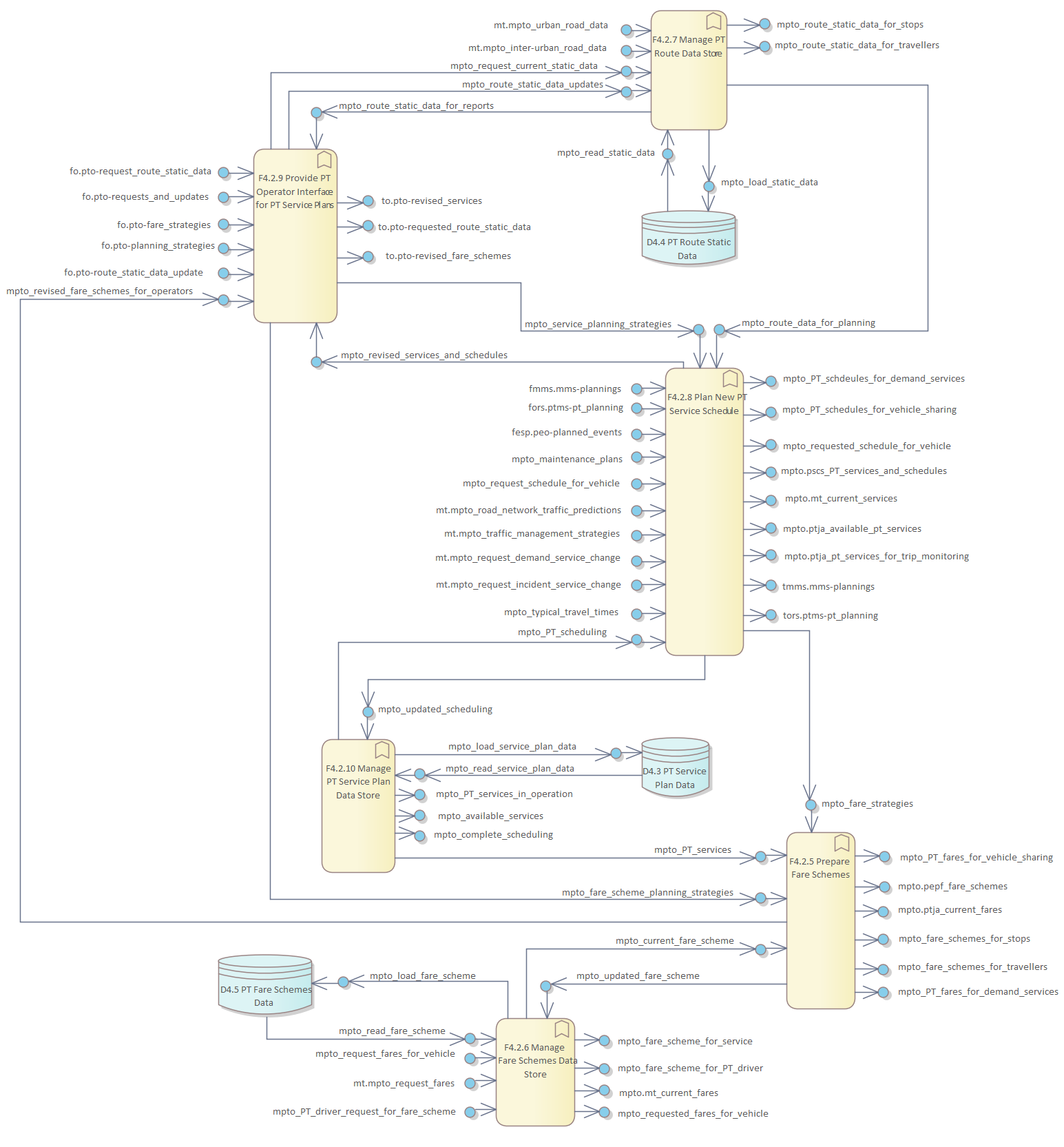 Frame Repository / Frame Functional View / Functionality / Functional Area F4 - Manage Public Transport Operations / F4. Manage Public Transport Operations / F4.2 Plan PT Service / DFD F4.2 Plan PT Service