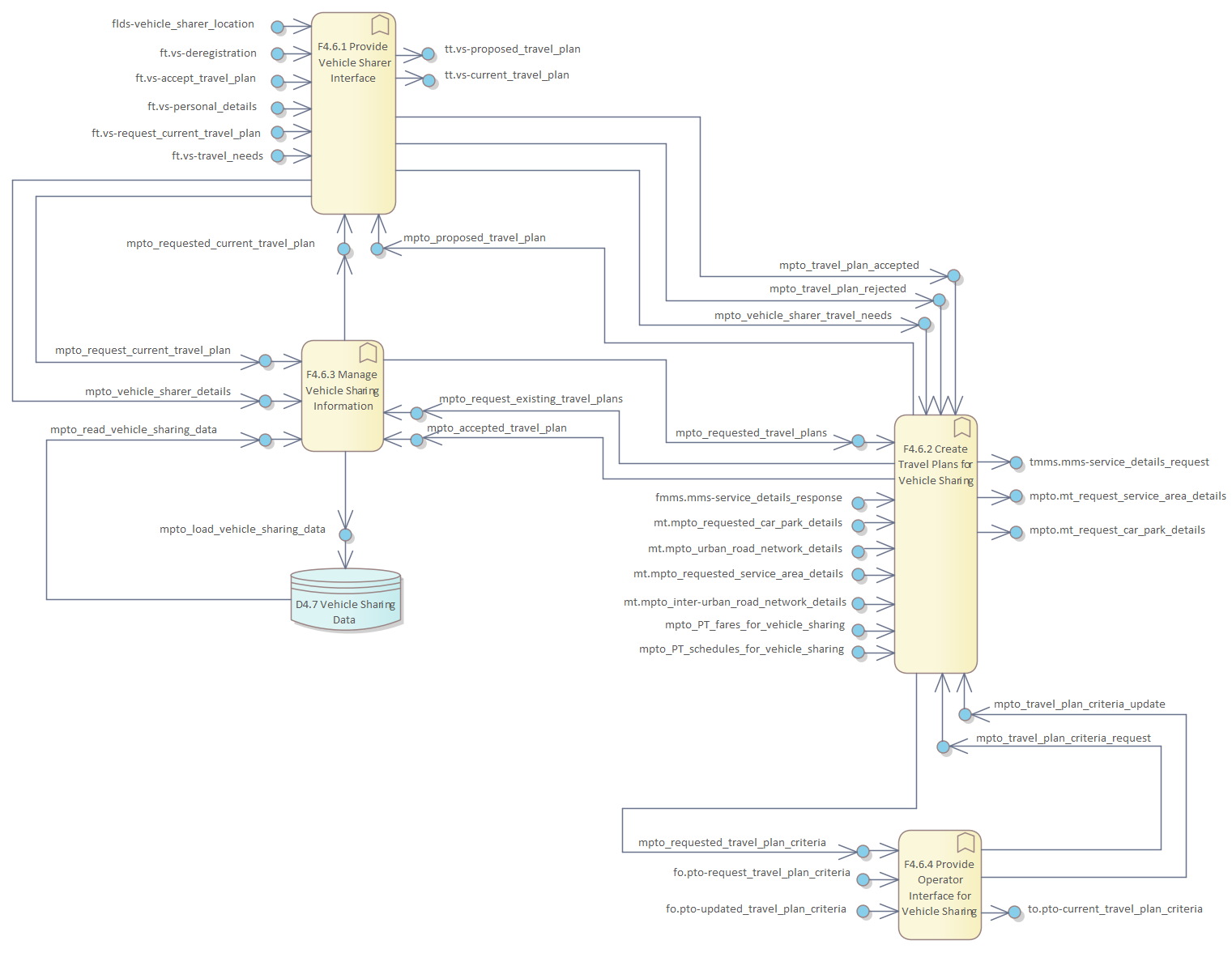 Frame Repository / Frame Functional View / Functionality / Functional Area F4 - Manage Public Transport Operations / F4. Manage Public Transport Operations / F4.6 Provide Facilities for Vehicle Sharing / DFD F4.6 Provide Facilities for Vehicle Sharing