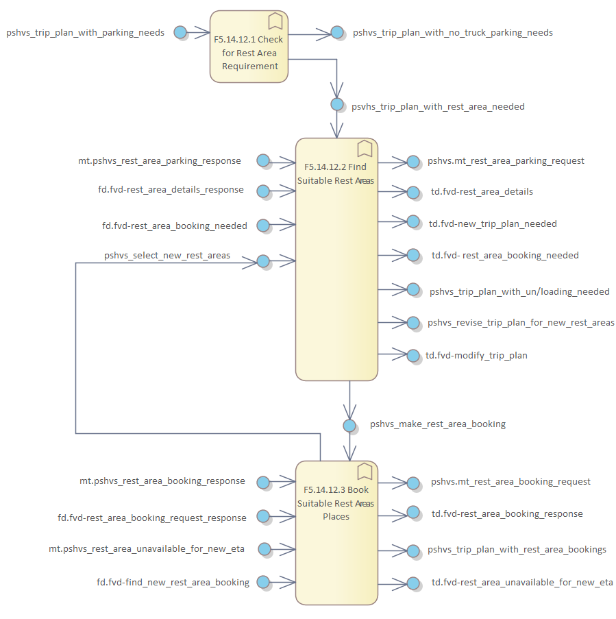Frame Repository / Frame Functional View / Functionality / Functional Area F5 - Provide Support for Host Vehicle Systems / F5. Provide Support for Host Vehicle Services / F5.14 Provide In-vehicle Trip Planning & Implementation / F5.14.12 Manage Use of Rest Areas / DFD F5.14.12 Manage Use of Rest Areas