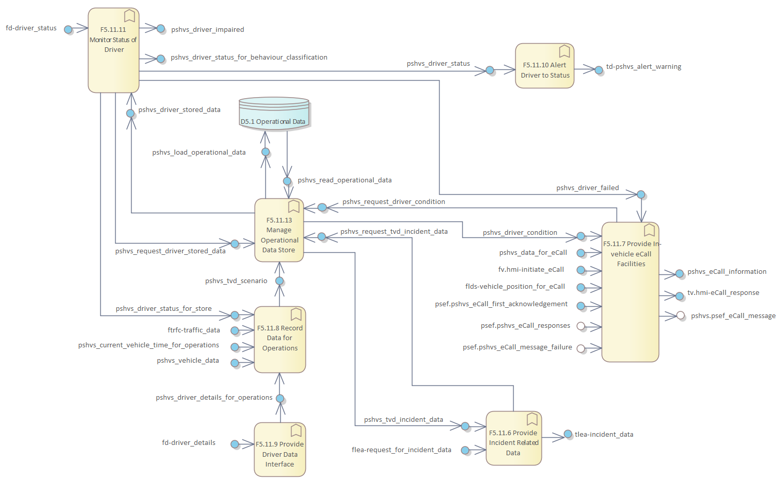Frame Repository / Frame Functional View / Functionality / Functional Area F5 - Provide Support for Host Vehicle Systems / F5. Provide Support for Host Vehicle Services / F5.11 Provide Driver Monitoring and eCall / DFD F5.11 Provide Driver Monitoring and eCall