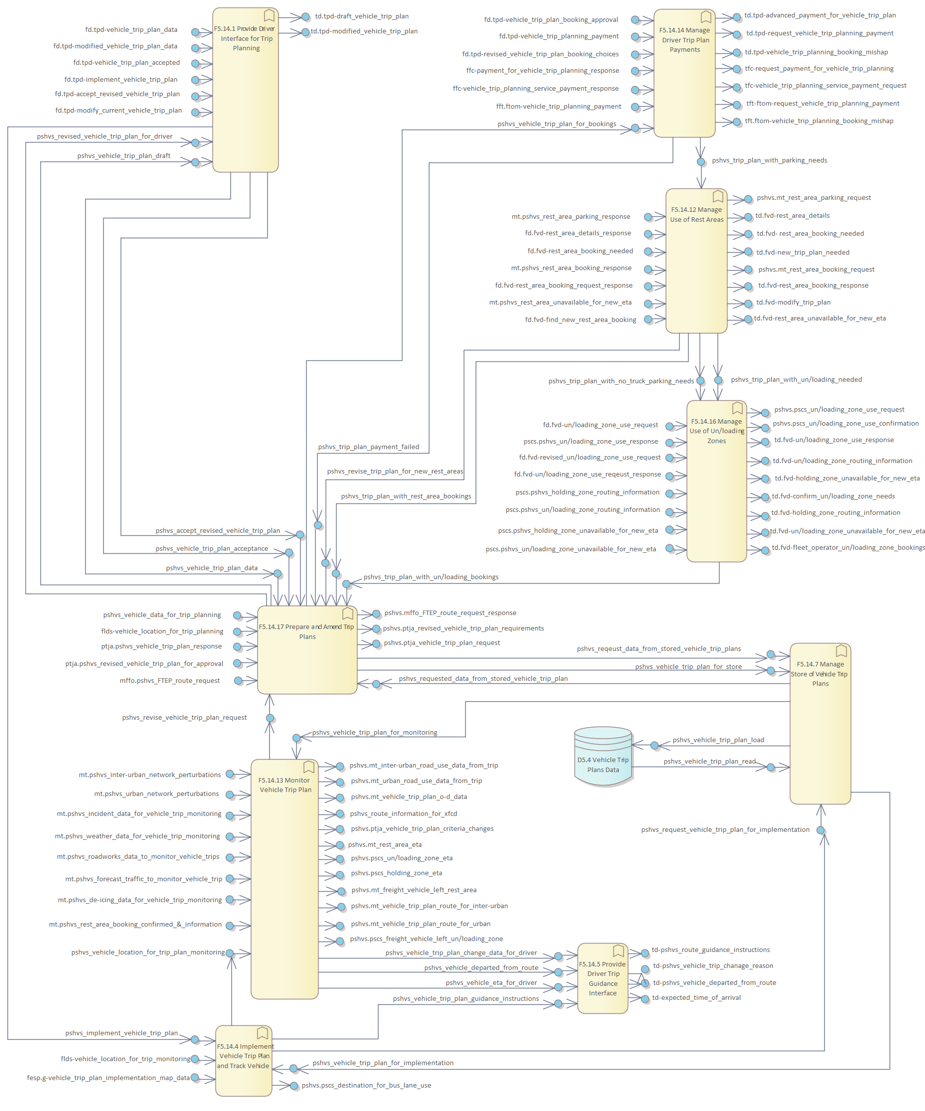 Frame Repository / Frame Functional View / Functionality / Functional Area F5 - Provide Support for Host Vehicle Systems / F5. Provide Support for Host Vehicle Services / F5.14 Provide In-vehicle Trip Planning & Implementation / DFD F5.14 Provide In-vehicle Trip Planning & Implementation
