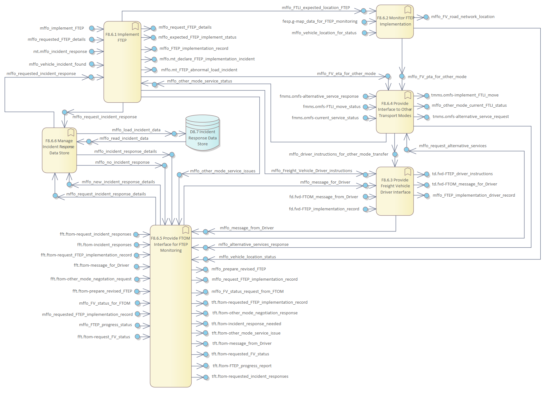 Frame Repository / Frame Functional View / Functionality / Functional Area F8 - Manage Freight and Fleet Operations / F8. Manage Freight and Fleet Operations / F8.6 Provide Freight Transport Service / DFD F8.6 Implement and Monitor FTEP