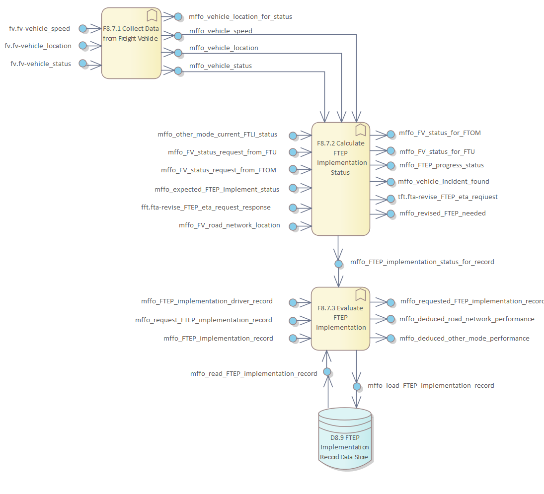 Frame Repository / Frame Functional View / Functionality / Functional Area F8 - Manage Freight and Fleet Operations / F8. Manage Freight and Fleet Operations / F8.7 Monitor Freight Vehicle during FTEP Implementation / DFD F8.7 Monitor Freight Vehicle during FTEP Implementation