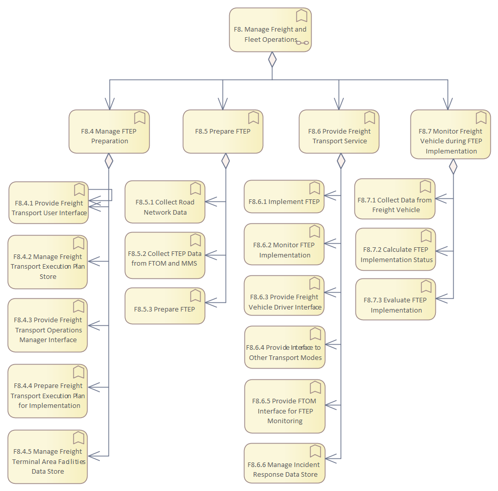 Frame Repository / Frame Functional View / Functionality / Functional Area F8 - Manage Freight and Fleet Operations / Functional Tree of Functional Area F8 Manage Freight and Fleet Operations