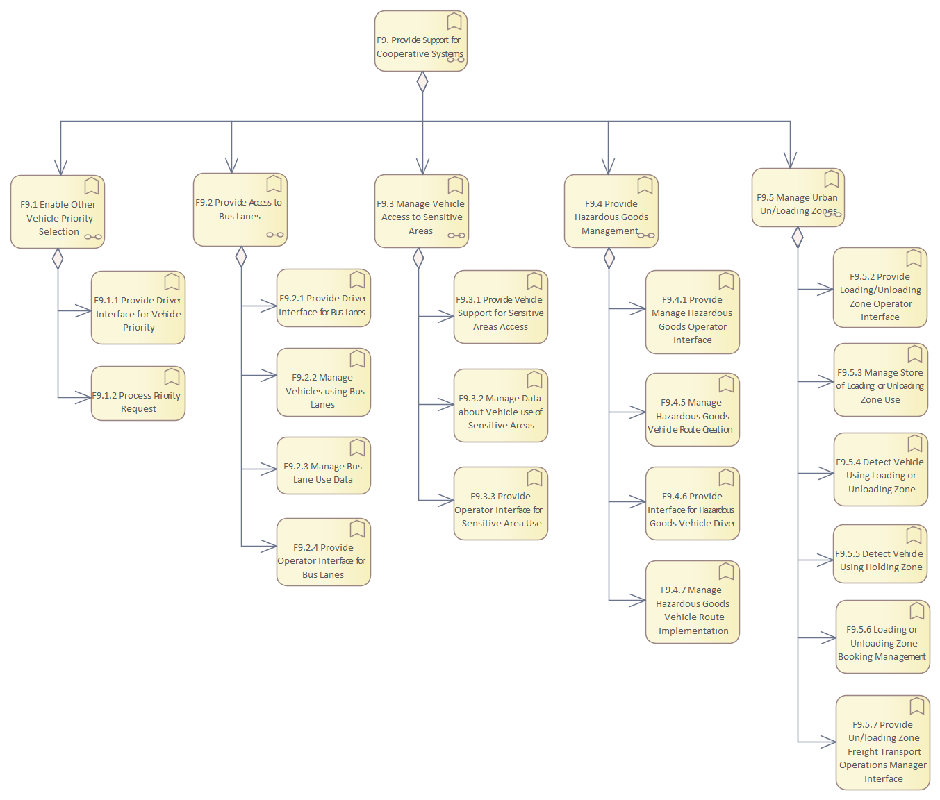 Frame Repository / Frame Functional View / Functionality / Functional Area F9 - Provide Support for Co-operative Systems / Functional Tree of Area F9 Provide Support for Cooperative Systems