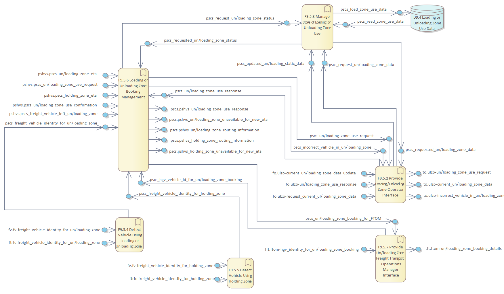 Frame Repository / Frame Functional View / Functionality / Functional Area F9 - Provide Support for Co-operative Systems / F9. Provide Support for Cooperative Systems / F9.5 Manage Urban Un/Loading Zones / DFD F9.5 Manage Use of Loading or Unloading Zones