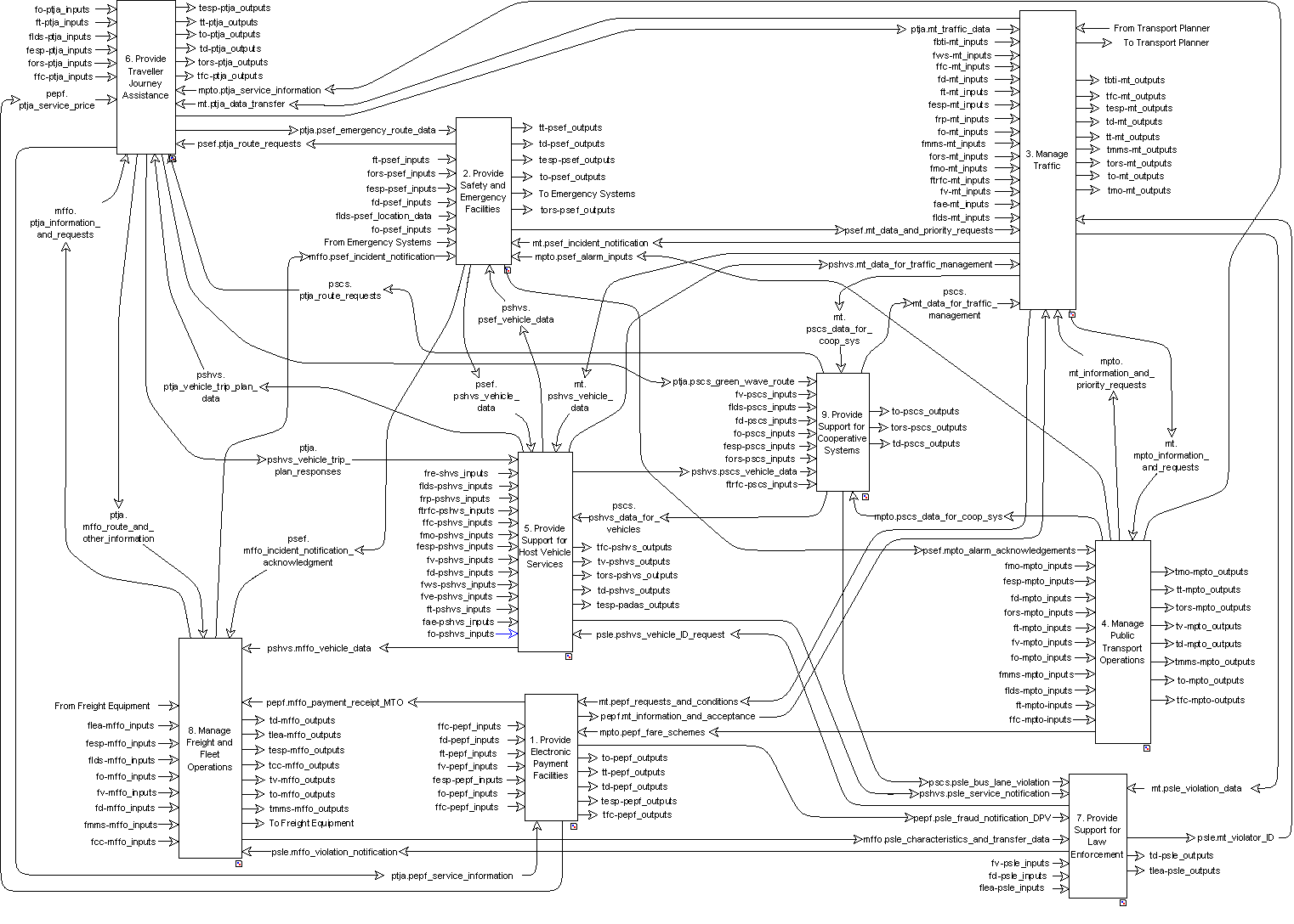 The 1st Diagram is a DFD diagram which provides a description of the Functional Area in the ITS Environment