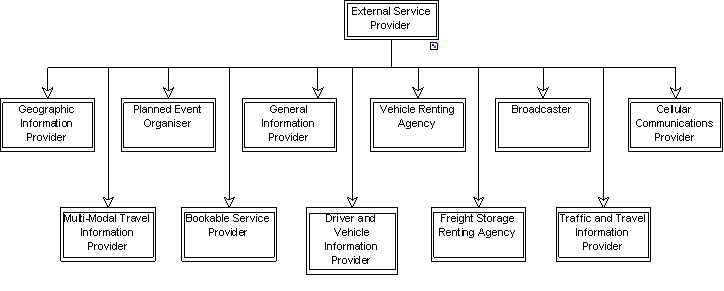 Some of these Actors shall simply provide information to the System, e.g. map data, information about points of interest. Other Actors shall interact with the System for the provision of services, e.g. output of traffic and travel information by broadcast radio, rental of freight storage facilities.