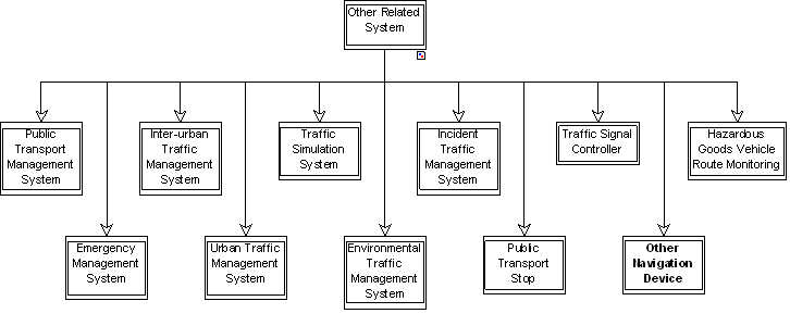 Typically these Systems shall be located in centres managing traffic, Public Transport, incidents, emergency services, or the impact of road transport on the environment. They may either serve other geographic areas, or are part of other organisations serving the same geographic area. The systems may also be other instances of such things as roadside equipment. This terminator shall enable traffic and travel information, plus details about traffic flows, control strategies, Public Transport services, and vehicle characteristics to be exchanged with these other Systems. It shall be possible for data to and from these other Systems to be requested by either System, or for it to be exchanged between the Systems at regular intervals.