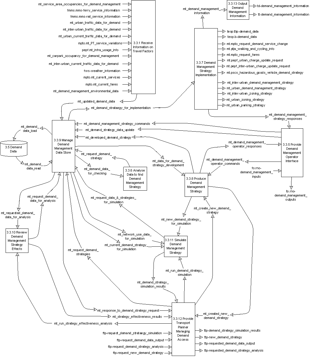 Between each of these Functions there are some Data Flows. A minority of these enable the Functions to exchange data with each other. However the vast majority enable the Functions to exchange data with other parts of the Manage Traffic Area, with other Areas and with the terminators. The Functions and Data Flows are contained in the DFD for Function 3.3 - DFD 3.3.