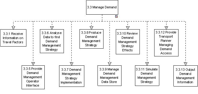 This High-level Function shall provide facilities for the management of the demand from travellers within the road network. The Function shall provide facilities that enable travellers to be directed and encouraged to use all modes of transport, including walking and cycling. The management activity shall be based on data collected within the Manage Traffic Area and by other Areas of the System. The Function shall enable these other Areas to be involved in the implementation of demand management strategies that aim to re-distribute traveller demand between modes of transport.